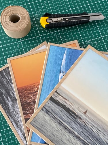 Toutes les photos ont été prises et retouchés par mes soins. Elles sont encadrées une à une à la main dans mon atelier à Audierne. Une fois ce premier travail accompli, elles sont imprimées dans un laboratoire spécialisé à Paris. Le reste de la production est fait soigneusement à la main entre Audierne et Pont-Croix.