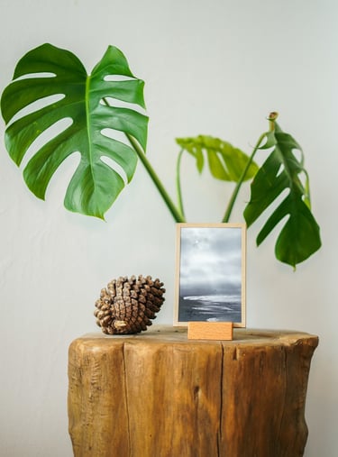 Encadrés la main, le socle de bois est inclus dans le prix.